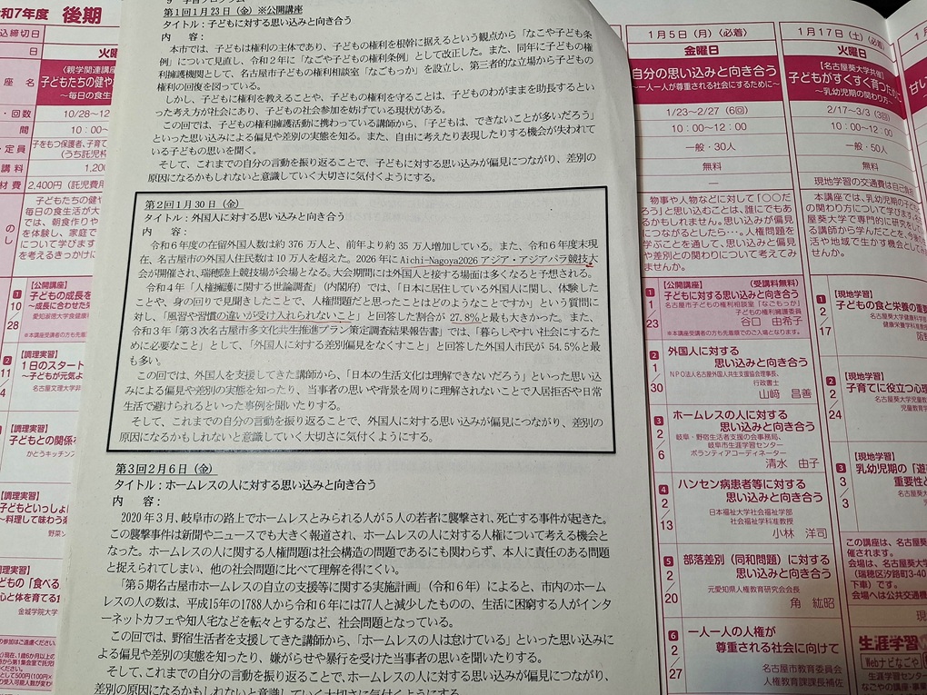 本日は、名古屋市瑞穂生涯学習センター主催の人権をテーマとした講座にて、講師を担当しました。